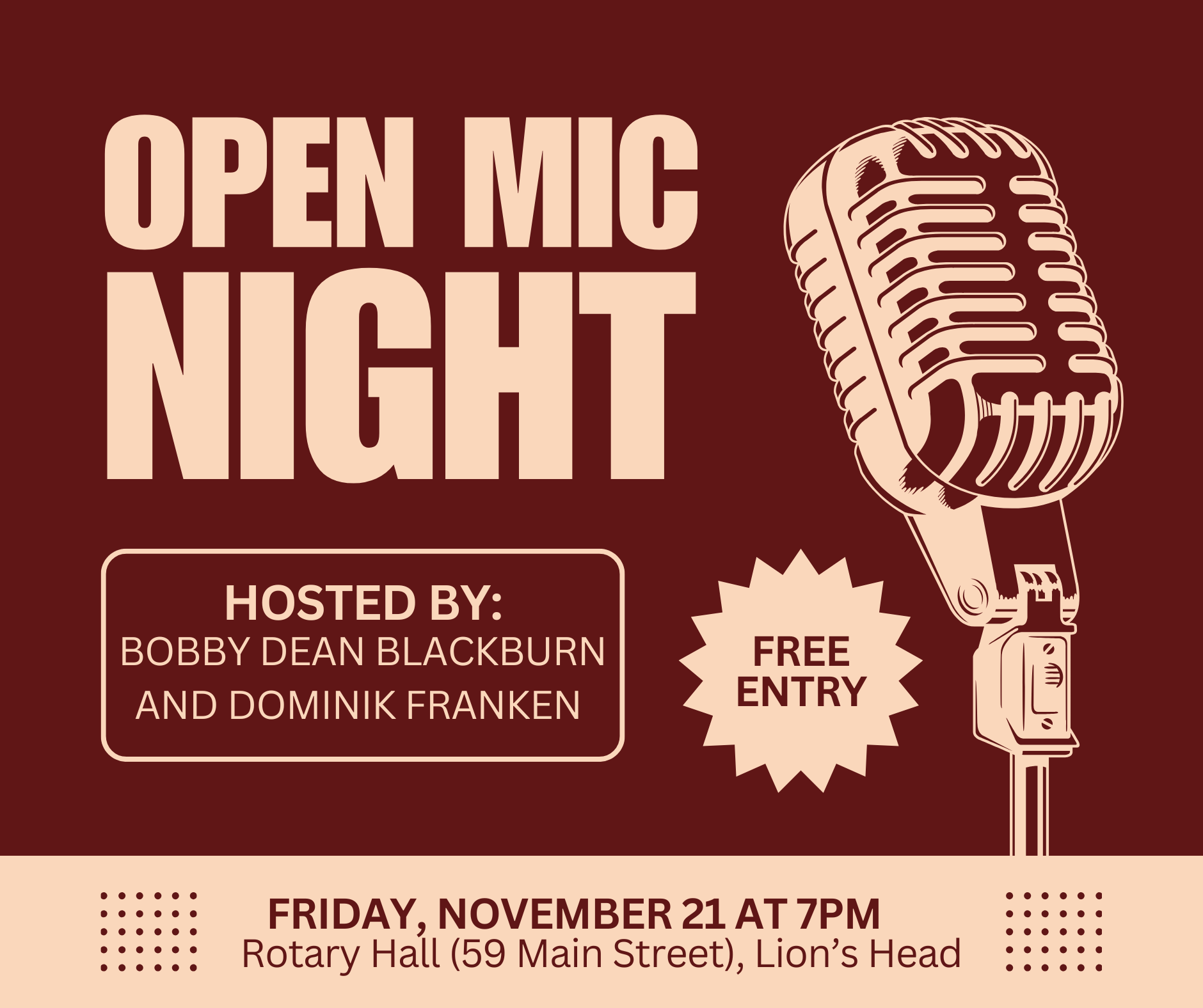 Open Mic Night at Rotary Hall in Lion's Head (59 Main Street)