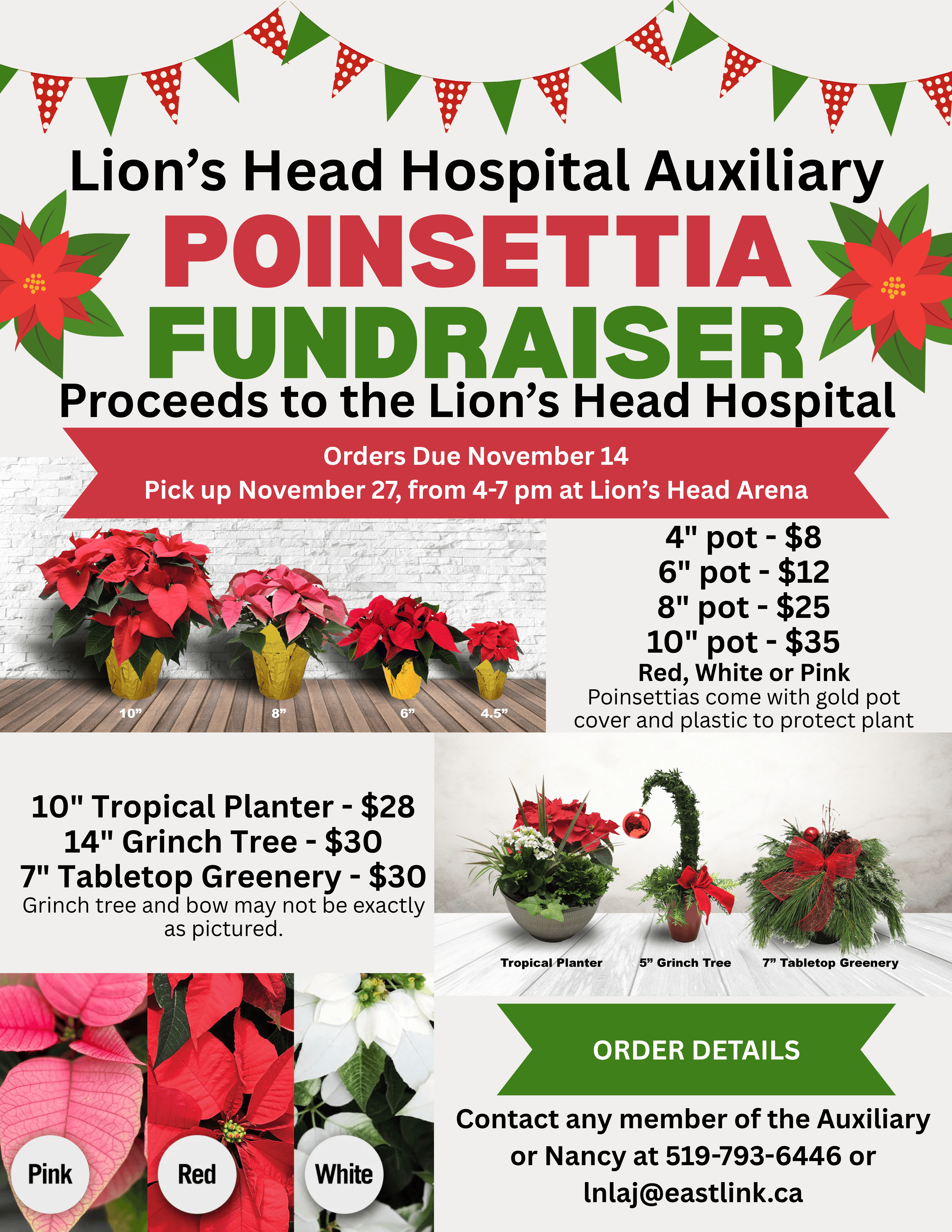 Lion's Head Hospital Auxiliary Poinsettia Sale, proceeds to the Lion's Head Hospital